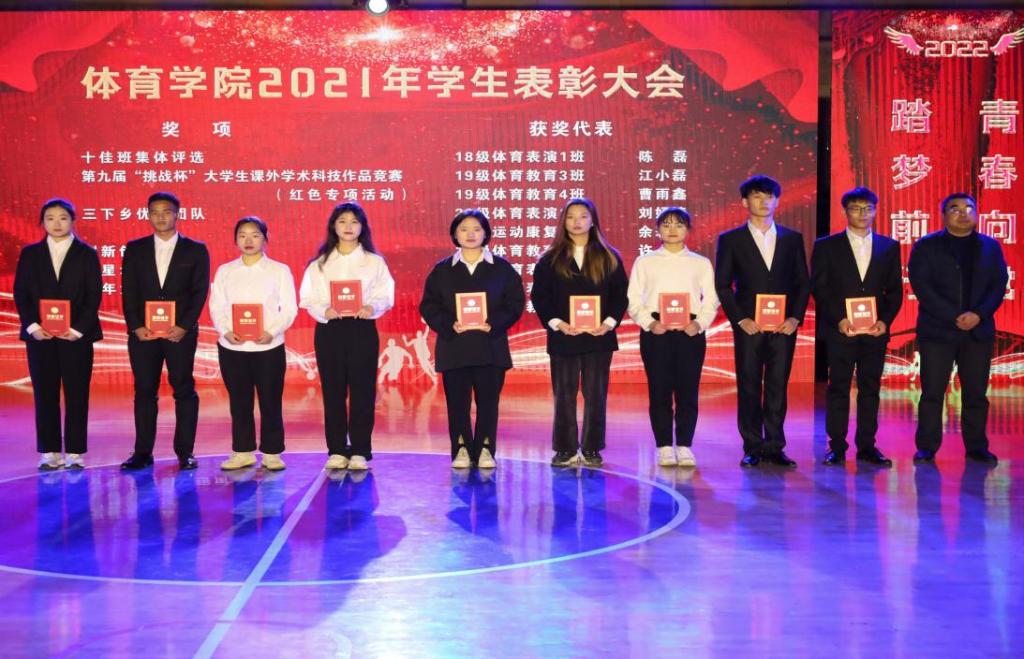 在表彰环节,王开友和章翔分别为18位获奖代表颁发了各类获奖证书,包含国家奖学金、国家励志奖学金和各类专业类赛事奖项。“举办此次晚会,是对2021年一年来米乐·M6(中国大陆)官方网站学子们拼搏进取的成果的一次集体展示。”晚会负责人体育教育专业2019(3)班的雷君杰表示,希望学生们能够通过本场晚会对今后的专业内容与专业知识有一个更全面、更立体的认识与理解,不断扎实基本功底、提升专业技能。(撰稿:学生记者 权琪 摄影:学生记者 吴浪 审核:高栋梁)