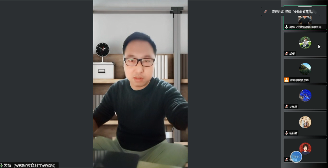 5月15日晚,“国培计划(2021)-安徽省体育音乐美术等薄弱学科教师深度研修项目”研修班(小学体育)第一期跟岗实践研修线上总结会议顺利召开。安徽省教育科学研究院吴桥主任、合肥市庐阳区体育教研员吴永奇主任、合肥市瑶海区体育教研员李亚琼主任、安庆师范大学章翔院长、全体国培学员跟岗导师出席会议,承训单位领导、项目组全体成员、全体学员参加会议。会议由米乐副院长林秋菊主持。