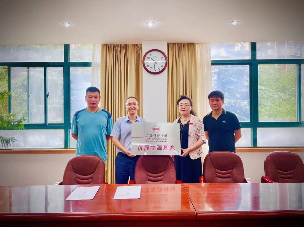 座谈交流中,高栋梁代表学校与各中学签订了安庆师范大学优秀生源基地协议,并授予各学校“安庆师范大学优质生源地”牌匾。