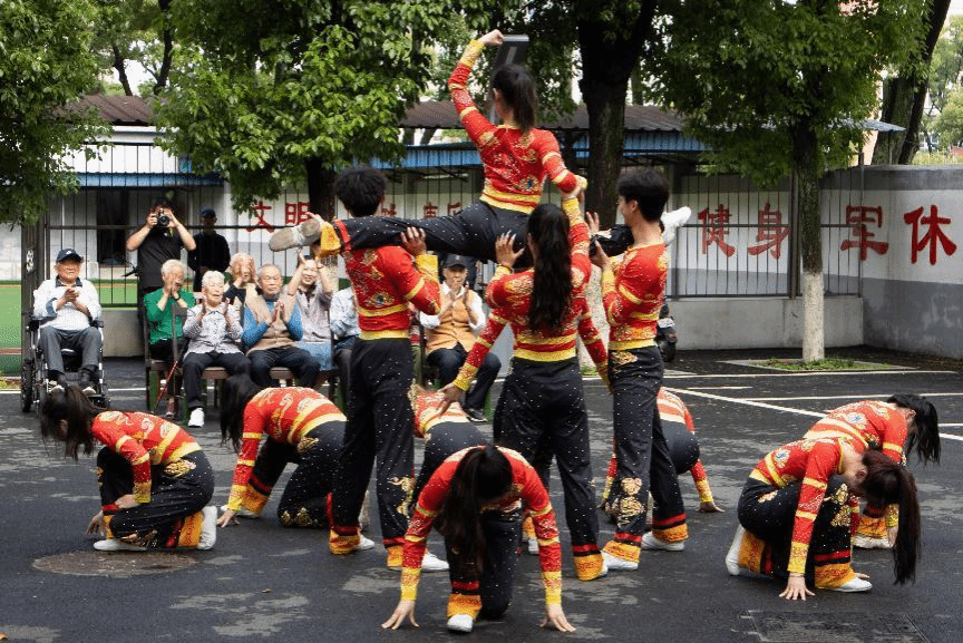离退休老干部们观看同学们舞蹈时,时而笑逐颜开,时而鼓掌喝彩,纷纷说“看到学生娃娃们这么活泼、这么热情,感觉自己都年轻了许多。”崔燕所长表示,所里离退休老干部们为党和国家的事业奋斗了一辈子,生活上有保障,只是有不少老人的子女不在身边,平时生活较为冷清,同学们来看望老人,还带来精彩节目,军休所内外都洋溢着愉快的笑声。“在同学们身上,我们看到了,英雄从不孤单、事迹不会被遗忘,这就是革命精神的生动传承。”
