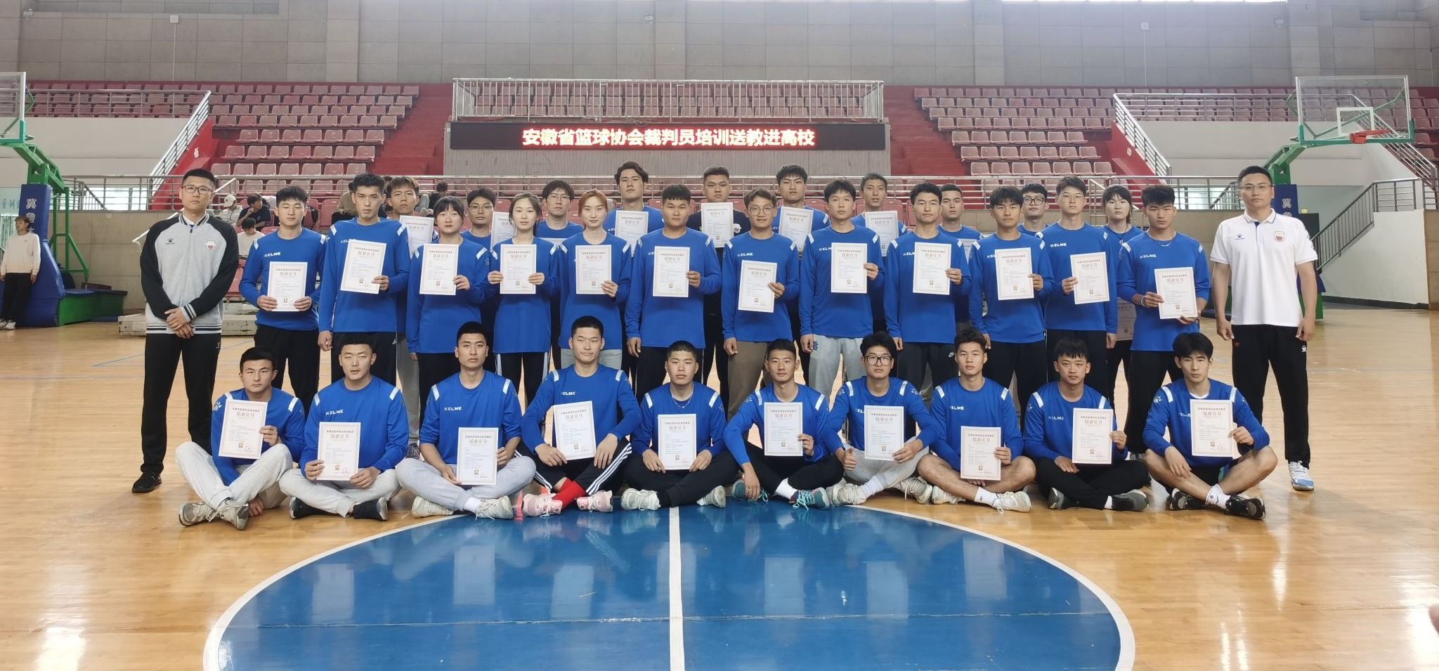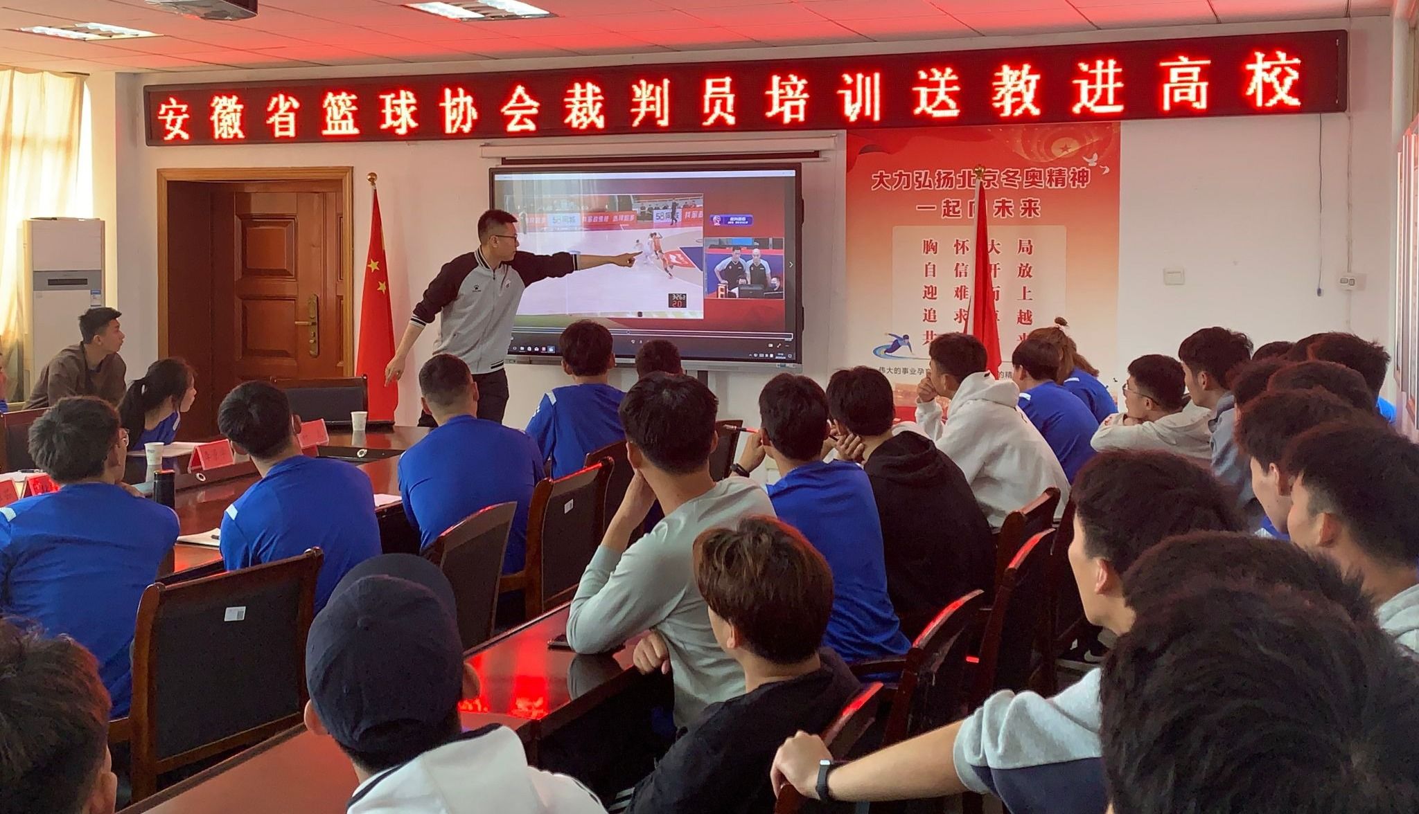 5月24日,由安徽省球类运动管理中心、安徽省篮球协会主办的裁判员培训送教进高校活动在安庆师范大学圆满落幕。省篮球协会副主席兼秘书长刘雅茹,省篮球协会副主席李景学,省篮球协会青少年发展部部长程丽,米乐·M6(中国大陆)官方网站副院长林秋菊,以及省篮协裁判员培训讲师团成员、国家级裁判员叶凡、陈亚东出席开班仪式。会议由米乐·M6(中国大陆)官方网站副院长王晓东主持。