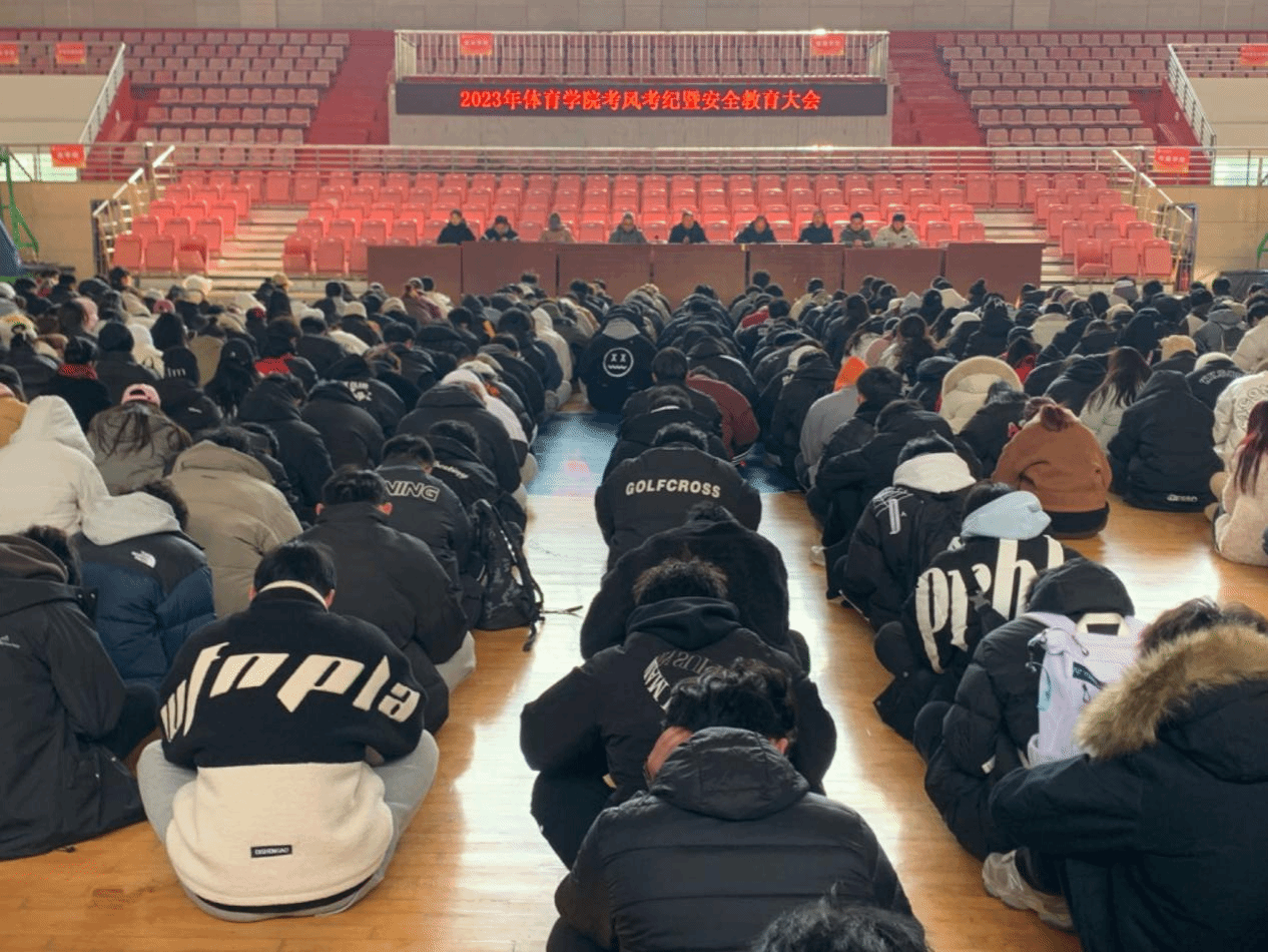 教务科王逸老师通报了上学期学生考试违纪情况,领学了学校考试违纪处分规定;团委负责人高伟飞老师强调了寒假离返校安全事项;学生代表2021级体育教育专业6班甘正阳同学做诚信考试发言。