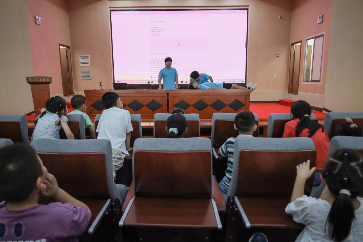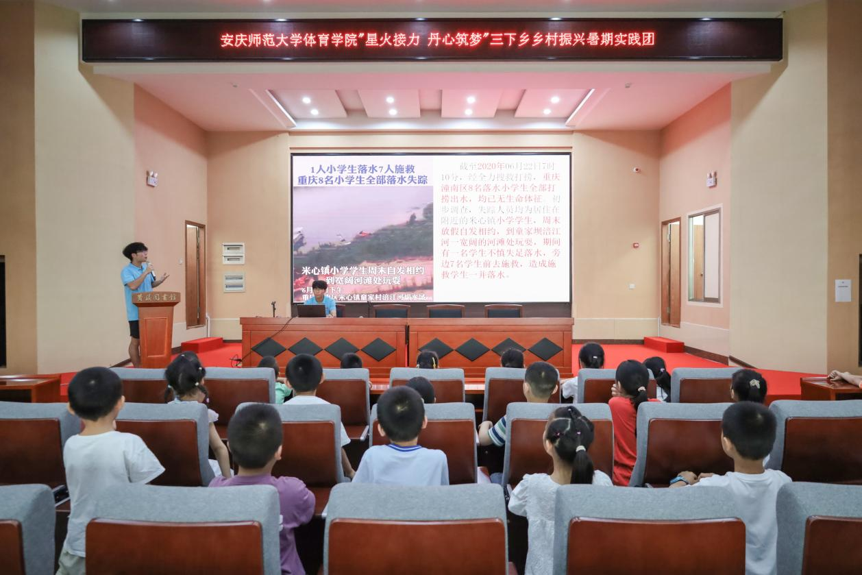 “小朋友们,如果你们遇到有人溺水了怎么办?”“如果你们心爱的东西掉水里了怎么办?”“如果你们在游泳的时候腿突然抽筋了怎么办?”……在主讲人、体育教育专业2022(3)班的胡志豪发问后,黄镇图书馆2024暑期托管班的孩子们踊跃举手回答。7月10日,“青·行知”米乐·M6(中国大陆)官方网站“星火接力,丹心筑梦”乡村振兴暑期社会实践团在黄镇图书馆报告厅开展暑期防溺水安全教育宣传活动,进一步加强托管班近30余名孩子的安全防护意识。