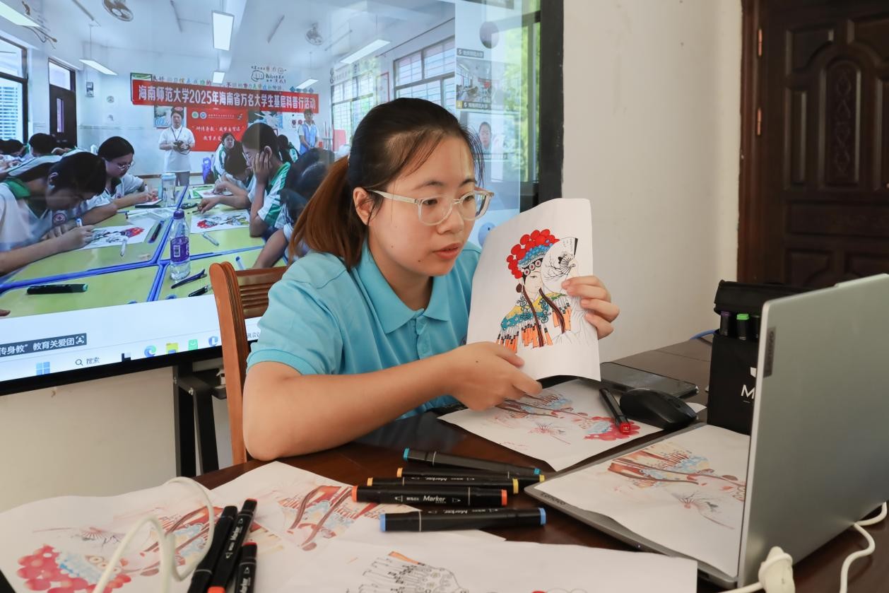 7月8日,米乐·M6(中国大陆)官方网站“三下乡”实践团队与海南师范大学实践团开展线上连线活动,为海南师范大学实践团基层科普地区儿童带来了一场别开生面的黄梅戏文化课堂。实践团队成员学前教育专业2023(2)班的戴璐璇通过有趣生动的讲解与互动,让远方的孩子们近距离感受黄梅戏这一国家非物质文化遗产的独特魅力。