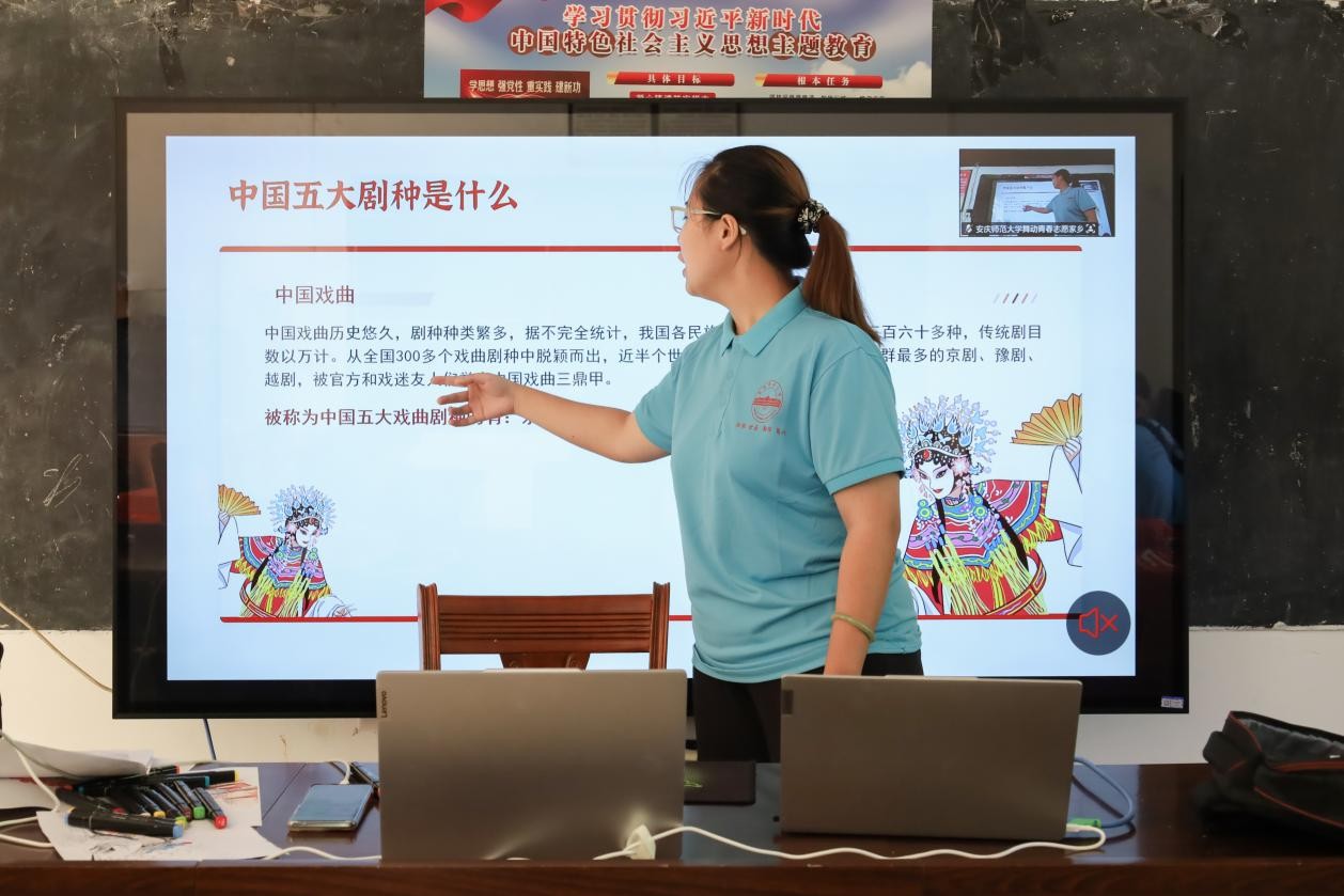 “我们在安庆上学,平常在学校就经常有接触到,借着此次机会将黄梅戏这张安庆文化名片传递出去,让更多的孩子能够接触到它。”实践团队负责人、表演(体育艺术表演方向)专业2023(3)班的金继芳进一步解释,团队希望以这种趣味互动的方式,让孩子们不止听说黄梅戏,更能深入感受它的文化之美。
