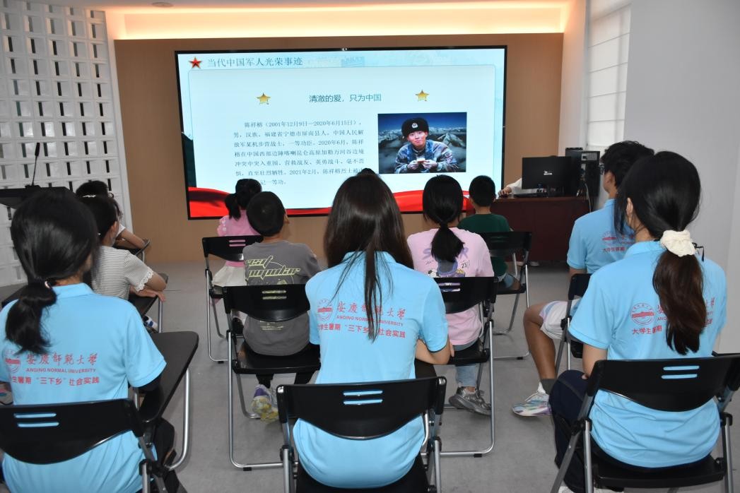 “八一”建军节前夕,广德市祠山街道公共文化中心内童声嘹亮,敬意满怀。7月31日,米乐“艺教润童,康护暖邻”暑期社会实践团联合清溪社区,共同举办“庆祝建军98周年”主题教育活动,通过沉浸式体验与互动教学,引领社区儿童感悟军魂力量,致敬“最可爱的人”,在孩子们心中播下爱国拥军的种子。