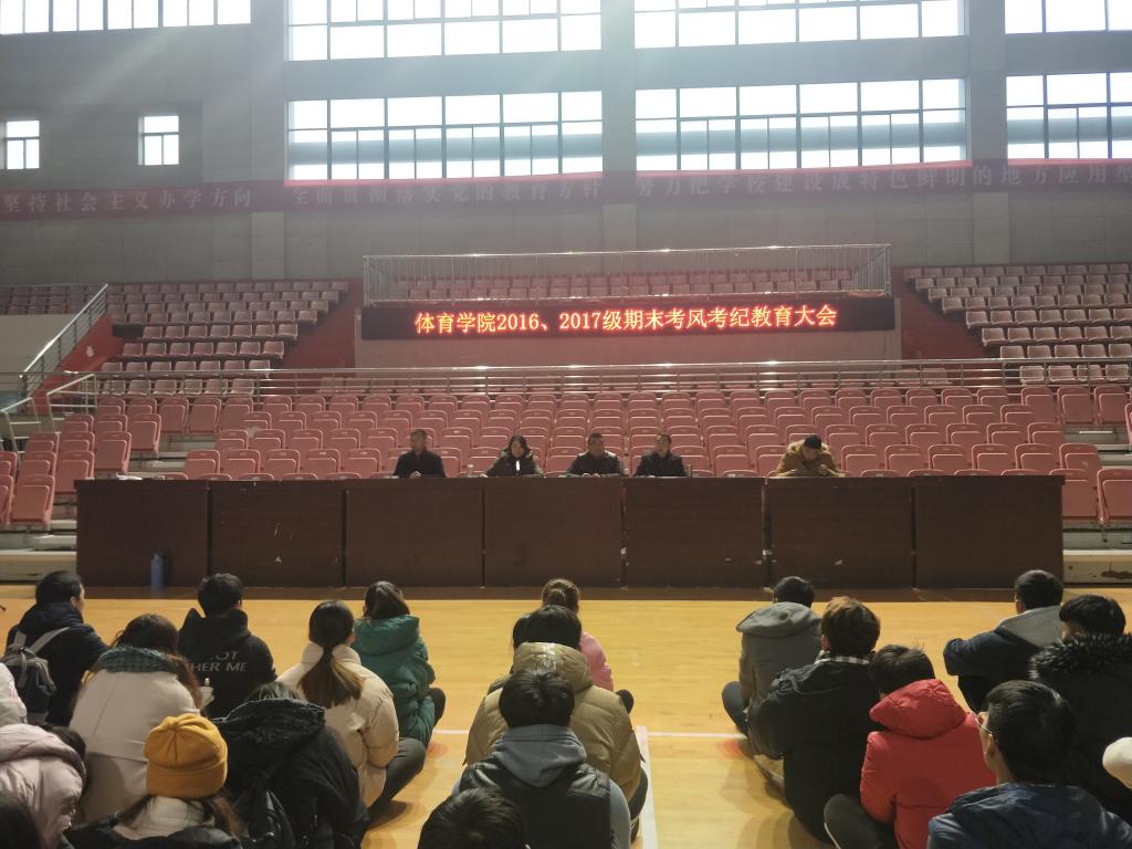 1月2日下午,米乐·M6(中国大陆)官方网站在篮球馆召开2016、2017级全体学生期末考试考风考纪教育大会。院长章翔、副院长林秋菊、党委副书记高栋梁以及各级辅导员出席会议。