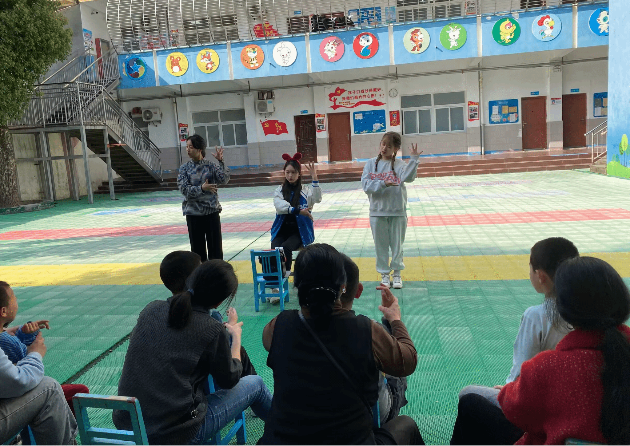 “小朋友们看我,小手举起来,慢一点!”活动现场,志愿服务队员带领小朋友们学起了简单的舞蹈动作。“老师看我的动作对吗?”孩子们脸上挂着灿烂的笑容,纷纷拍起了小手,用自己的方式表达对志愿者的真挚感谢。在志愿者耐心、细心地陪伴中,孩子们度过了一个快乐的下午。