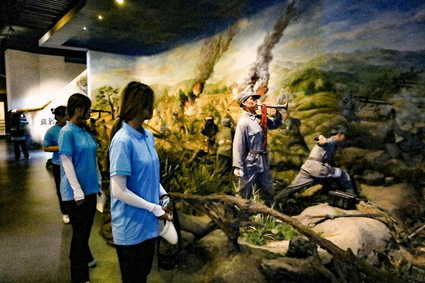 幻影成像、物理沙盘、智能触摸屏……烈士纪念馆通过多种形式还原历史事件,并配以丰富的图文解说和文物,使团队成员们深刻了解到在不同时期为安庆革命事业牺牲的烈士事迹。“没有先烈们的付出,就没有繁荣富强的祖国,人民也过不上幸福美好的生活。”实践团成员、体育教育专业2021(4)班的阮懋为是一名退伍学生,参观完烈士纪念馆,他表示:“我会争取向前辈们看齐,做好学生本职工作,学好专业知识,尽自己所能为祖国做贡献!”
