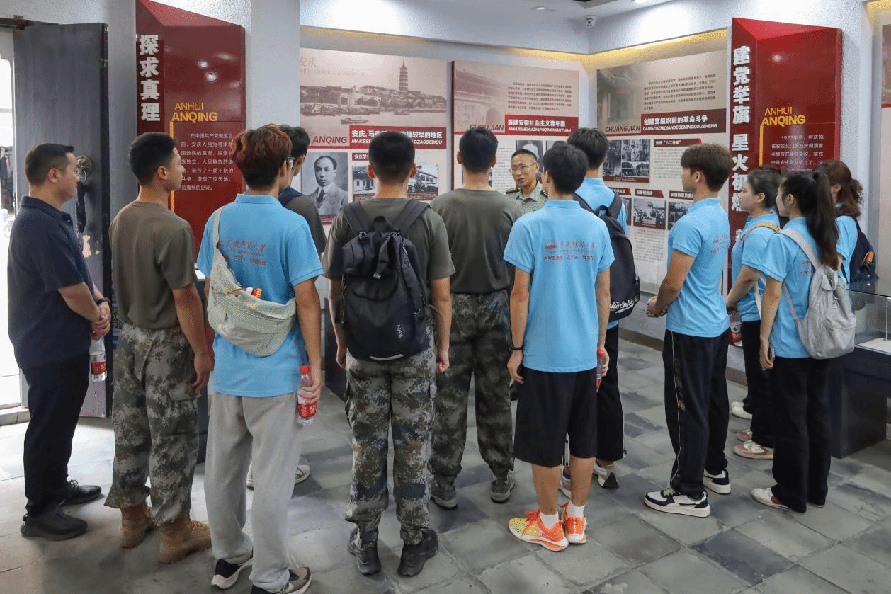 此次活动由安庆市大观区人武部与安庆师范大学联合开展,分为参观中共安庆建党会议旧址陈列馆、参与国防教育讲座以及退役复学学生分享军旅经历三个环节,人武部上校部长陈洪涛、上校政委聂竹青出席指导活动。