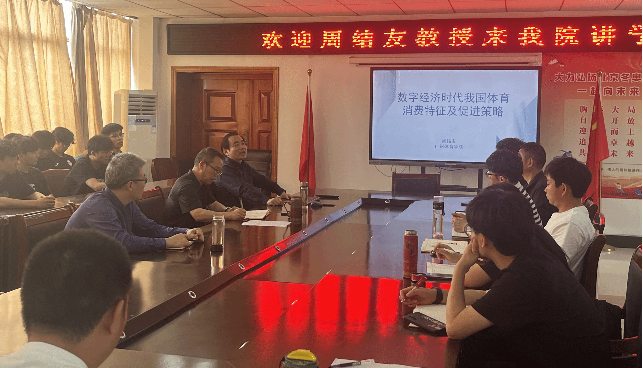4月30日,米乐·M6(中国大陆)官方网站特邀广州米乐·M6(中国大陆)官方网站周结友教授,开展了《数字经济时代我国体育消费特征及促进策略》学术讲座。讲座由副院长孙明运教授主持,副院长王晓东、教师代表及研究生代表到场聆听。