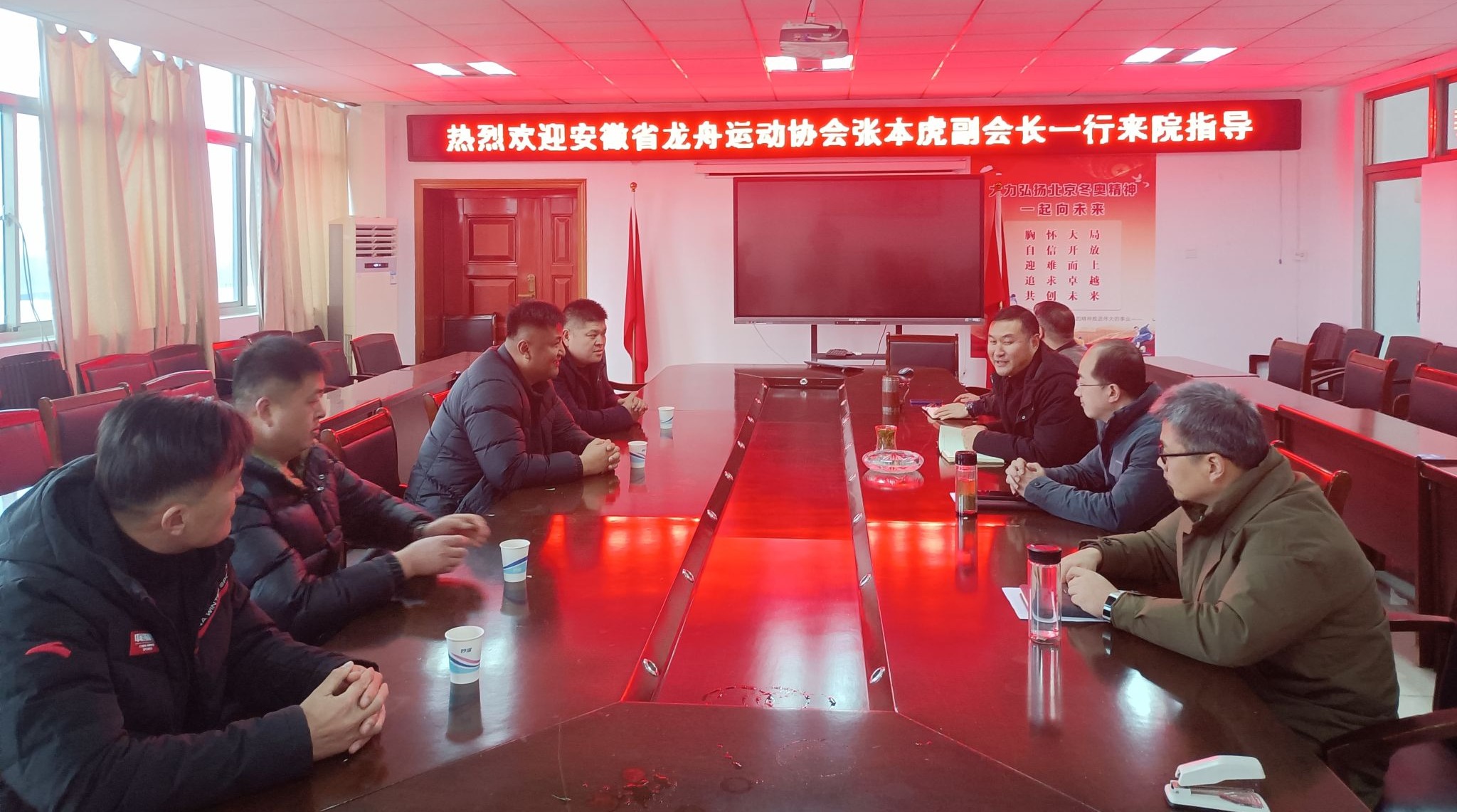 2月14日上午,安徽省龙舟运动协会副会长张本虎一行来到米乐·M6(中国大陆)官方网站调研并洽谈龙舟赛事工作。米乐·M6(中国大陆)官方网站党政领导班子、教研室主任参与座谈并陪同调研。