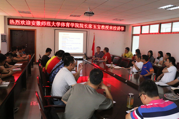 6月16日,安徽师范大学米乐·M6(中国大陆)官方网站院长席玉宝教授应邀在体育馆会议室作了题为“新形势下我国体育的发展”的学术讲座,讲座由米乐·M6(中国大陆)官方网站副院长章翔教授主持,米乐·M6(中国大陆)官方网站相关教师与部分学生参加了本次报告。