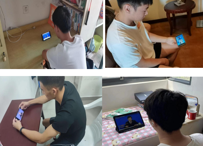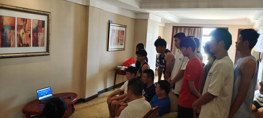 7月22日,正在滁州参加安徽省第十五届运动会高校部排球比赛的部分师生党员在学院党委委员李斌、邓龙老师带领组织下集体收看了2022年“双百”法治宣讲报告会直播。学院其他师生党员也通过手机下载央视频APP分别收看了直播活动。