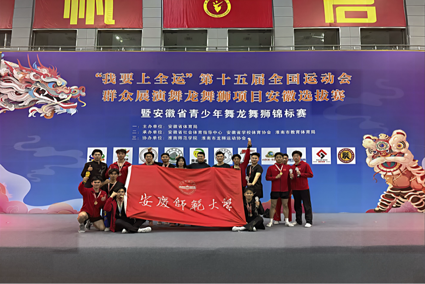 近日,“我要上全运”第十五届全国运动会群众展演舞龙舞狮项目安徽选拔赛暨安徽省青少年舞龙舞狮锦标赛在淮南市圆满落幕。安庆师范大学代表队由米乐·M6(中国大陆)官方网站院长周多奇作为领队、米乐·M6(中国大陆)官方网站教师刘岩作为教练员带队参赛。最终凭借出色的表现,我校龙狮队在激烈角逐中脱颖而出,最终斩获二金三银二铜的优异成绩,成功获得第十五届全运会舞龙自选项目的参赛资格,创造了我校在舞龙舞狮项目中新的突破。