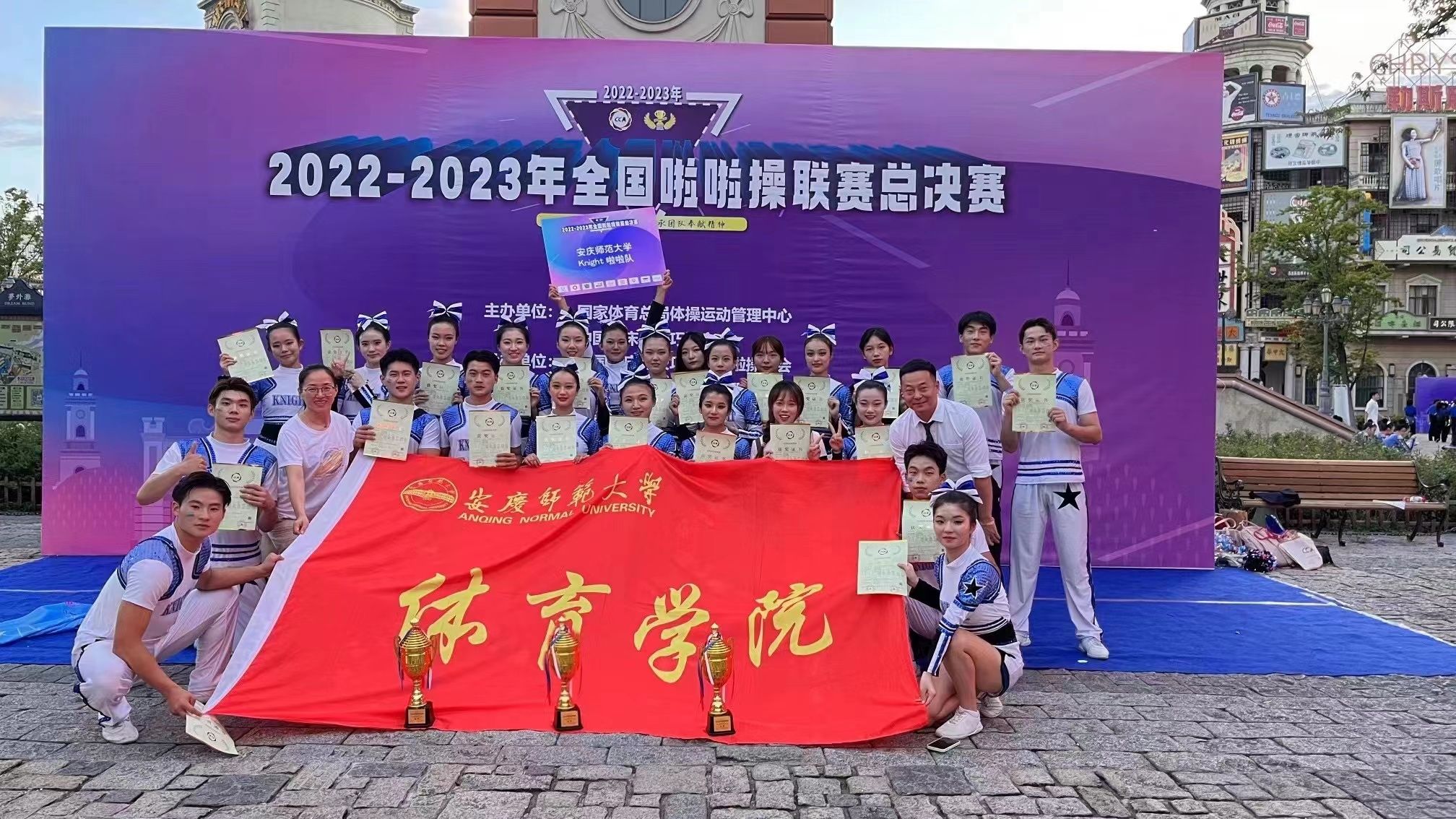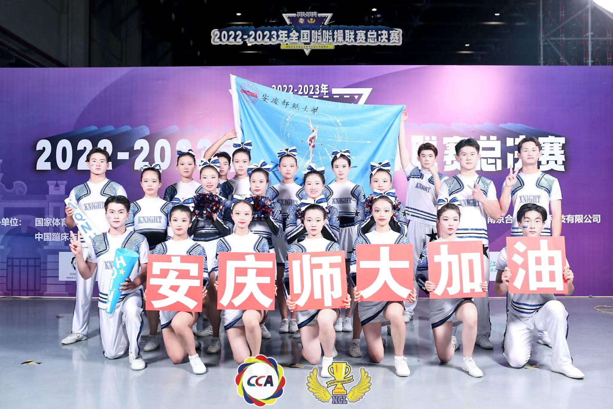 比赛场上,我校运动员充分发扬团结进取、积极向上、不断突破自我的精神,展示了花球、爵士和技巧等不同风格的啦啦操表演,托举、转体、跳跃等高难度技术动作,动作整齐划一、一气呵成,赢得了评委的一致认可和观众的热烈掌声,在全国赛场上展示了安庆师大青年学子良好的精神风貌,为学校赢得了荣誉。