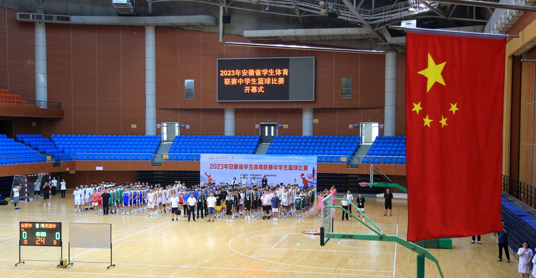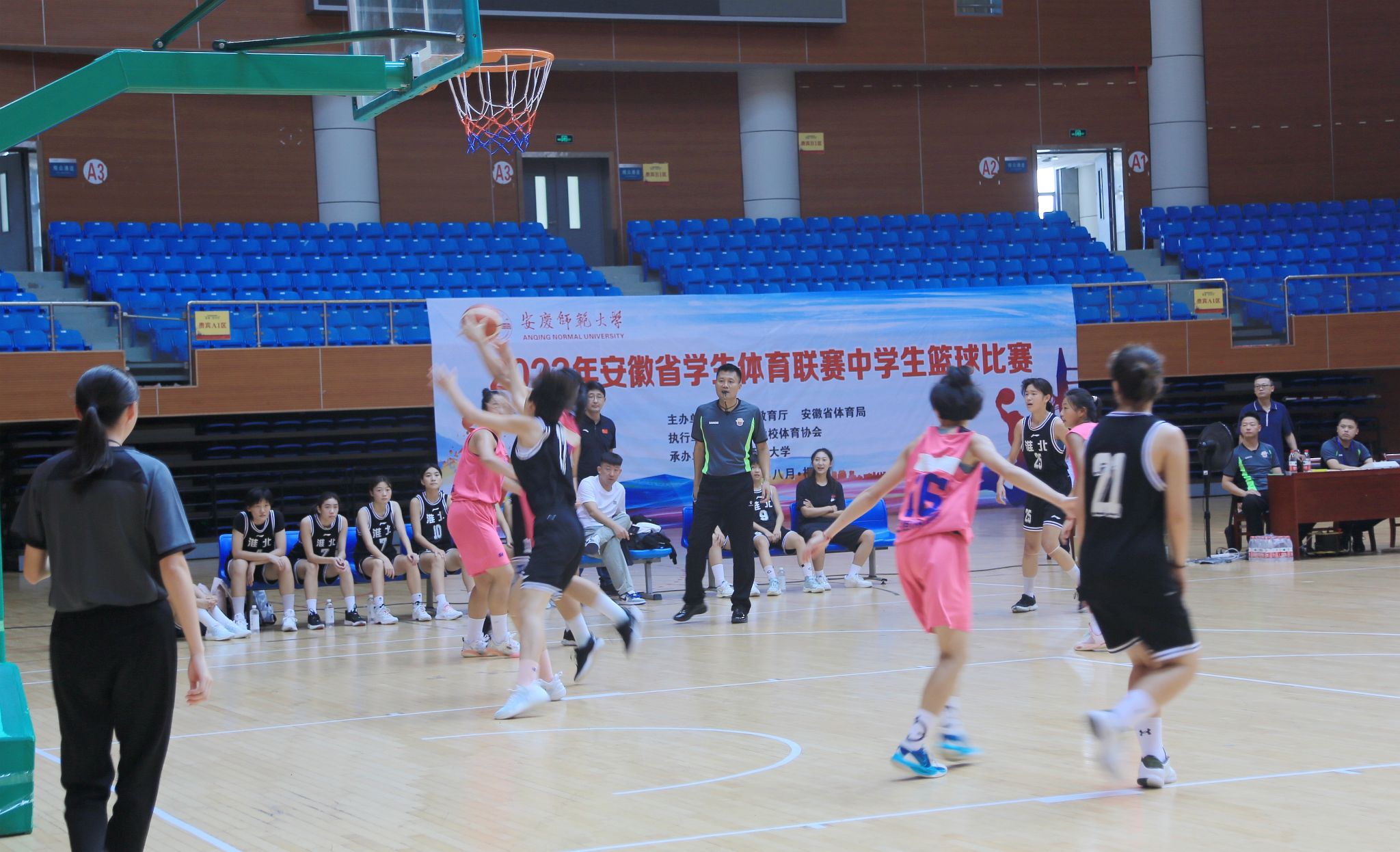8月16至21日,由安徽省教育厅、安徽省体育局主办,安庆师范大学承办的2023年安徽省学生体育联赛中学生篮球比赛在桐城市体育馆举办,来自安徽省9个地市的14支代表队近210名选手参加比赛。比赛期间,校党委副书记崔明、安徽省教育厅体卫艺处副处长葛德连亲到现场对赛事组织和保障工作进行现场指导。
