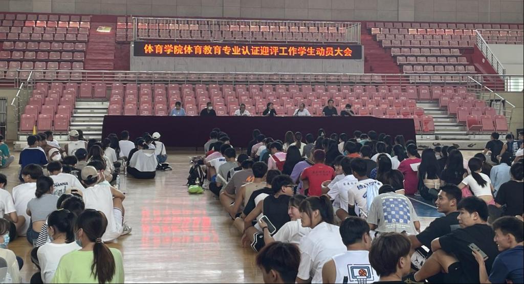为进一步做好体育教育专业认证迎评工作,9月5日中午,学院在米乐·M6(中国大陆)官方网站篮球馆召开专业认证迎评工作学生动员大会。体育学院副院长林秋菊、党委副书记王玮、学院教师代表王晓东博士和部分专职辅导员代表出席会议,学院全体在校学生参加本次会议。会议由学院党委副书记王玮主持。