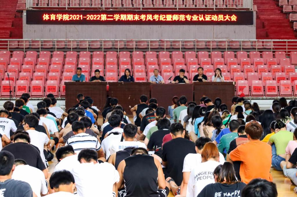 5月30日中午,米乐·M6(中国大陆)官方网站在体育馆篮球馆召开2021-2022学年第二学期期末考试考风考纪暨师范专业认证动员大会。副院长林秋菊、教学办主任和辅导员老师出席会议,全体研究生、本科生参加会议。党委副书记高栋梁主持会议。