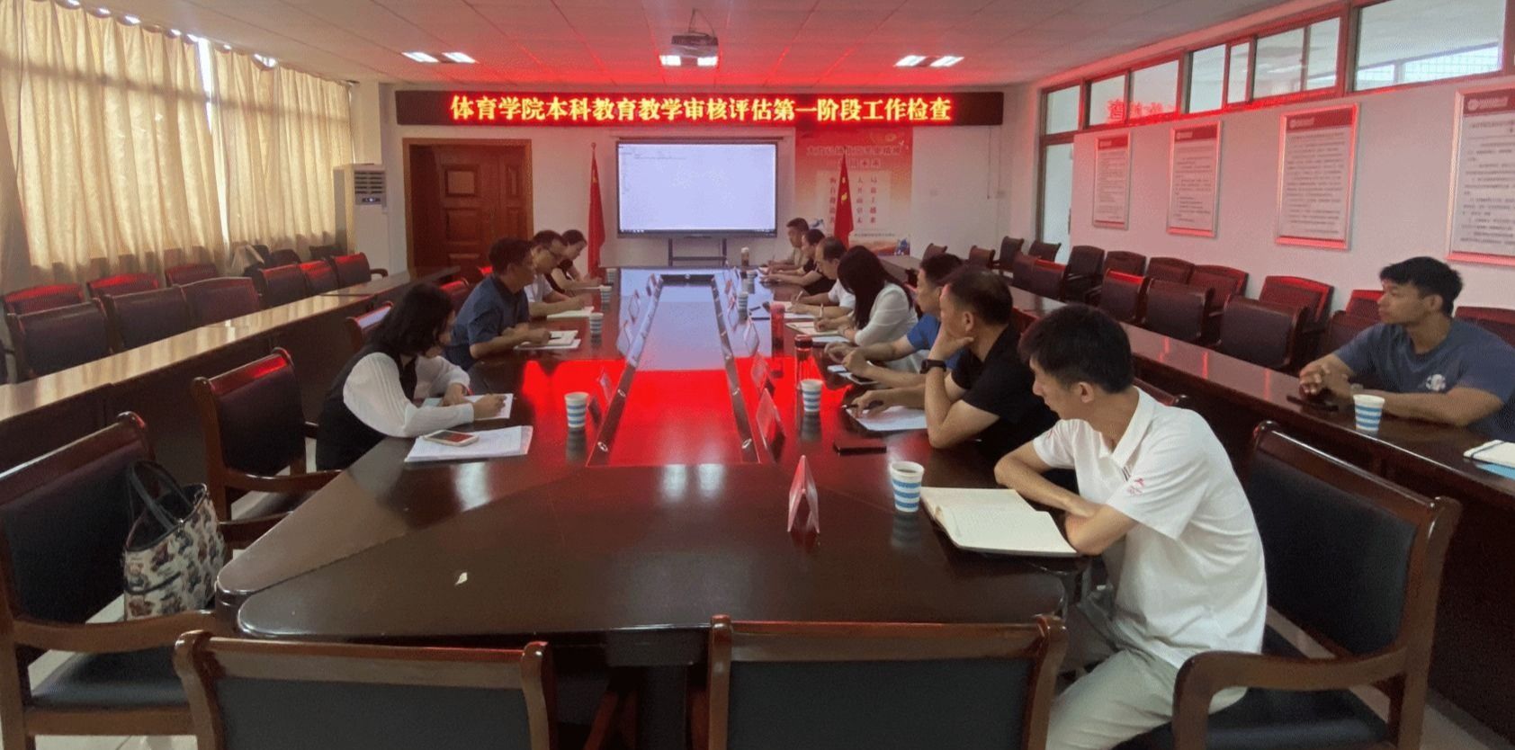 根据工作安排,检查组听取了学院本科教育教学审核评估第一阶段工作情况汇报,与会人员就学院如何更有效地推进审核评估工作,提升教育教学水平进行了深入交流。检查组一行对学院自评自建工作给予了充分肯定,针对下一阶段工作,检查组要求:要继续根据学校教育教学审核评估要求,扎实推进各项工作,优化基层教学组织建设,开展教学工作业绩考核,重视教师教学能力提升,注重专业特色凝练,推动体育学科教学评价进一步改革。